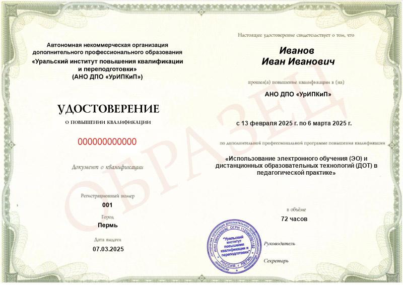 - Повышали квалификацию в АНО ДПО «УрИПКиП» – вам будет выдано удостоверение.