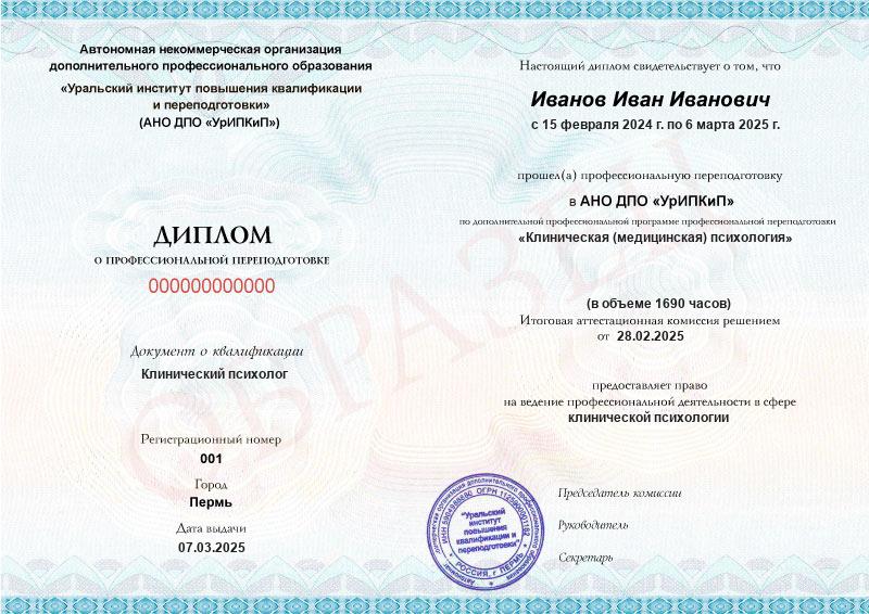 Курс обучения Клиническая (медицинская) психология (1690ч)