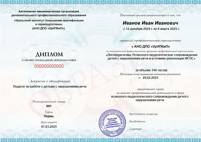 Да, дипломы и удостоверения оформляются в соответствии с действующим законодательством РФ. Документы печатаются на специальных бланках, заверяются печатью АНО ДПО «УрИПКиП».