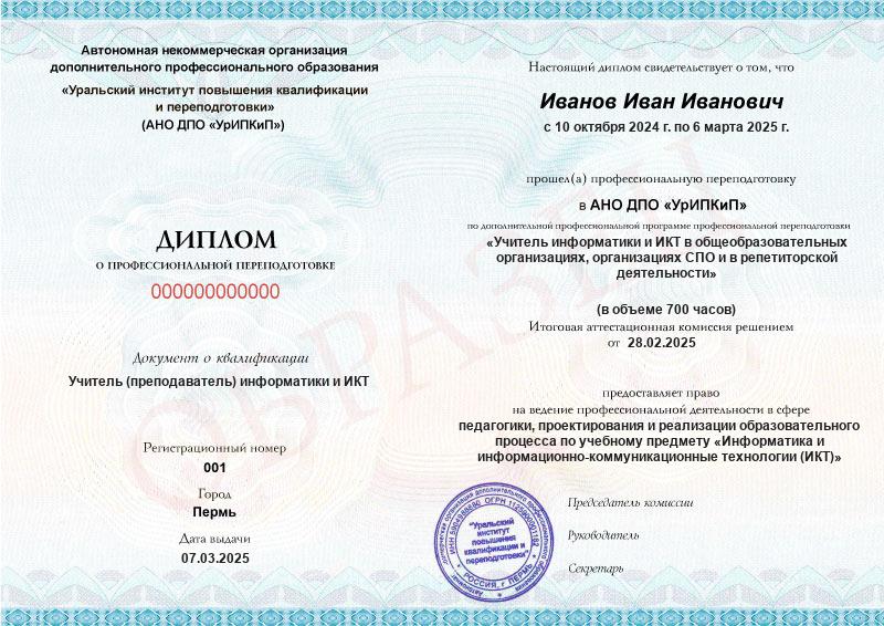 Курс обучения Учитель информатики и ИКТ в общеобразовательных организациях, организациях СПО и в репетиторской деятельности (700ч)